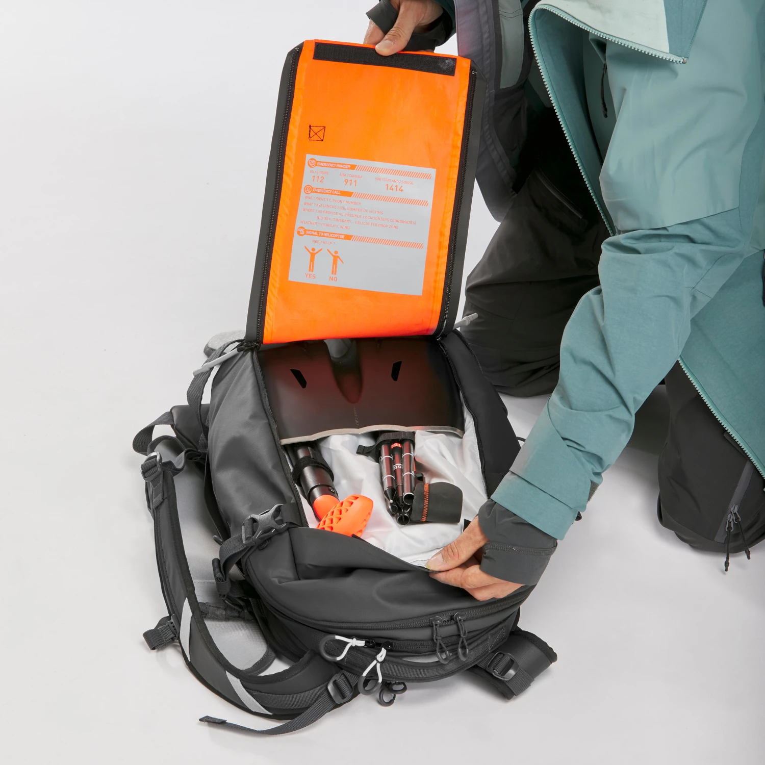 A large backpack with a removable back protector designed for freeriders. Backpack with a removable back protector and a quick-opening pocket specially designed for a shovel and probe.