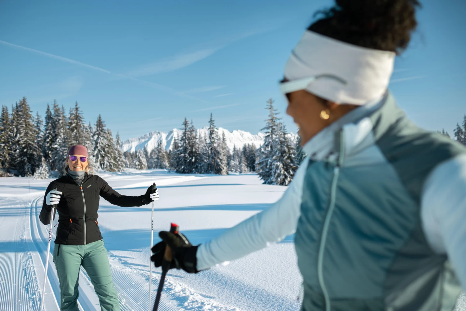 This jacket is for cross-country skiing at average intensity and/or in cold weather. A slim fit and padded front panel make the 550 jacket soft, warm, and versatile. It’s ideal in cold weather.